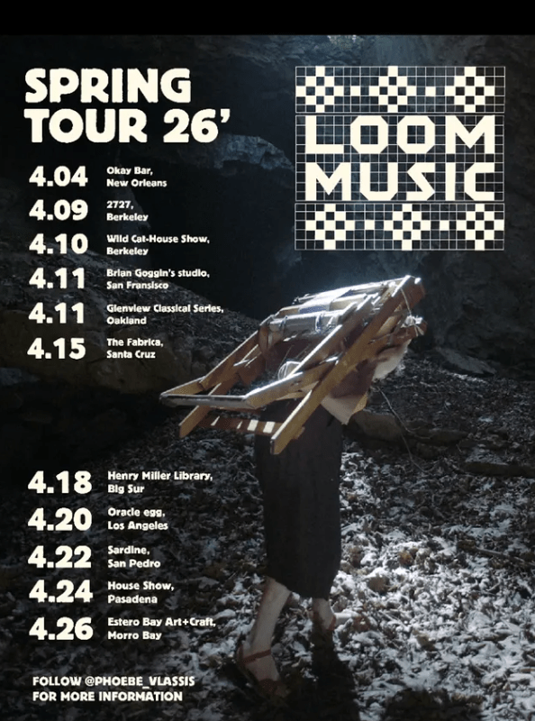 Attention weavers, music nerds, yarn fiends, and art-lovers of all kinds! We are beyond excited to be hosting Loom Music, a concert in the courtyard with musician/weaver/artist Phoebe Vlassis, who makes music with her voice, loom, and electronics. More information coming soon.