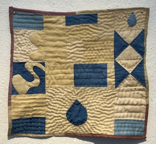 “My quilts are a chance for me to learn from my materials and to give them a second life. Most of my fabric is sourced second-hand from places like The Fábrica or local thrift stores. I incorporate natural dyes, some of which are locally foraged, and the slow and steady practice of hand quilting, which allows me to infuse the pieces with memory and stories.”