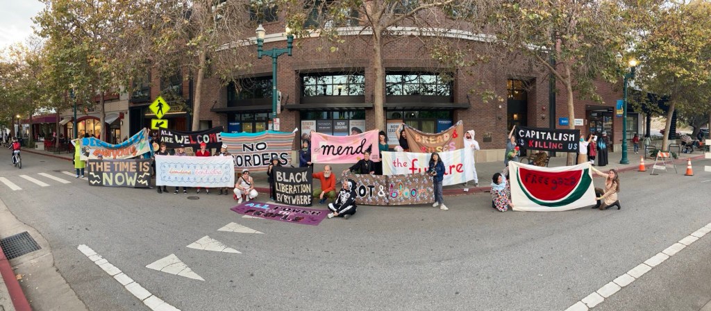 Join us for a spooky parade through Downtown Santa Cruz on Halloween night. The streets will be closed for trick-or-treat, so we will have a silly, small, low-key parade to show off the protest banners and mingle with the spirits.