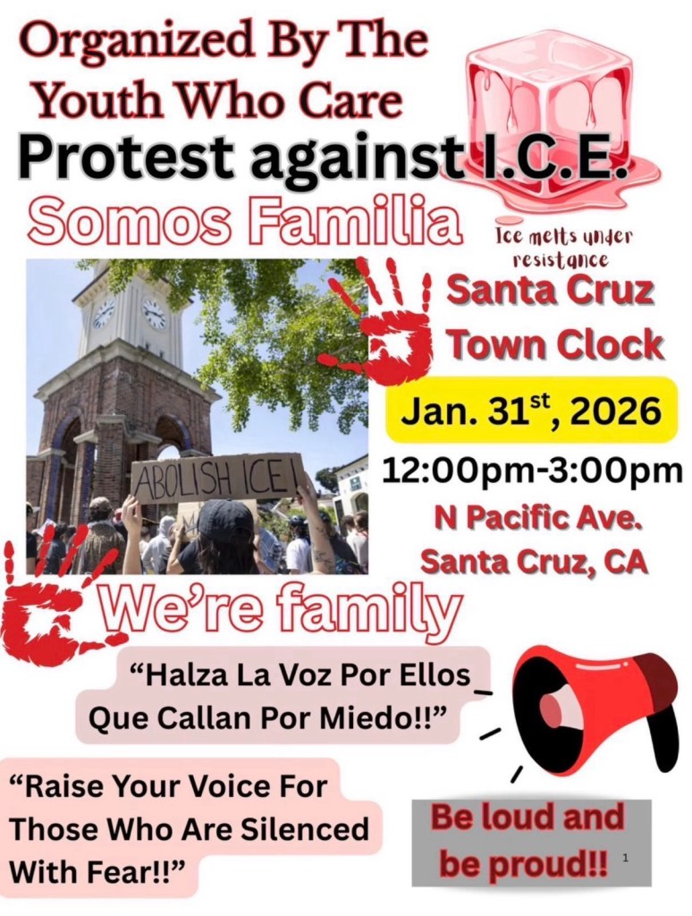One such rally is planned for tomorrow at the Clock Tower in Santa Cruz. This youth-led protest against ICE will take place on January 31st from noon until 3pm.