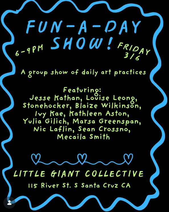 Fun-a-Day happened in January– come to Little Giant Collective this Friday to see what people made! Fábrica collective members and friends of the project are among the participants in this group show.