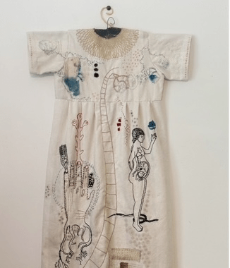 Through textiles, mixed media, collage, found objects, specimens, field stations, and visual poetics, this work invites you into an electrical ecology of tears, spores, and signals—where healing metabolizes through sympoesis, seeping, recombining, and remembering.