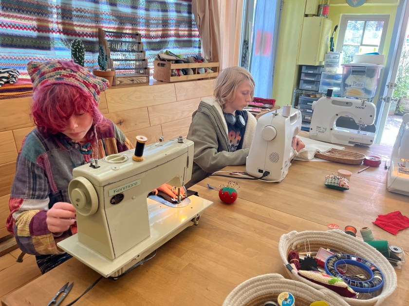 Stop by to say hi or stay for some stitching and a cuppa tea. This is a mellow open house with banner sewing and fresh art on the walls.